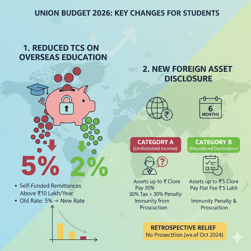 While the Budget has softened its stance on TCS, it has simultaneously sharpened its focus on financial disclosures. One of the most significant announcements for students is the clarification and expansion of foreign asset disclosure rules under Indian tax laws.